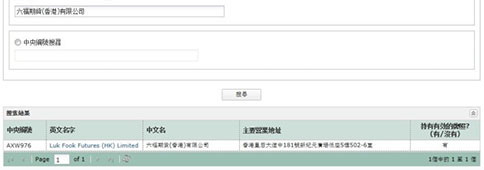 選擇中文名輸入輸入公司的繁體字,如:卓信期貨(香港)有限公司或者選英文名,輸入 zhuoxin Futures (HK) Limited。如下圖: