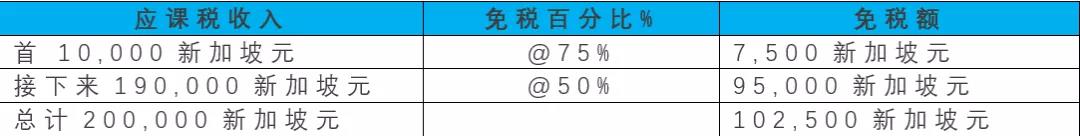 1、首1萬新幣應(yīng)納稅收入中的7500新幣免稅;